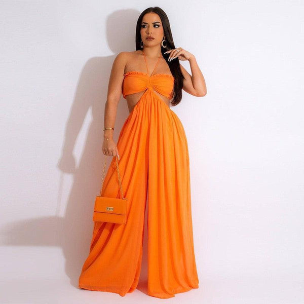 Chiffon Chest-wrapped Bare Back Wide-leg Jumpsuit European
