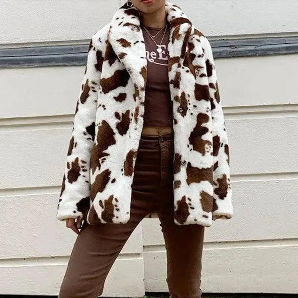 - Material: Luxurious rabbit fur with a distinctive cow pattern