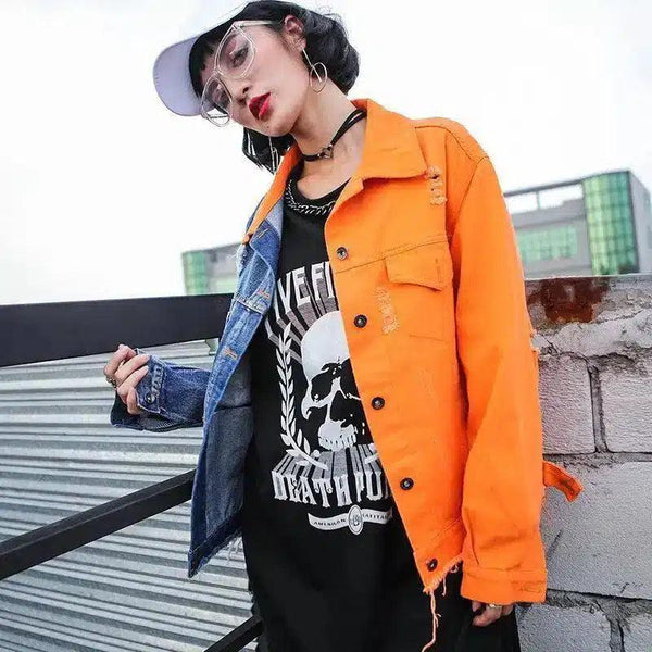 - Type of Garment: Color-blocked denim jacket
