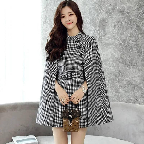 Design Wool Cape Lace-up Collar Coat
