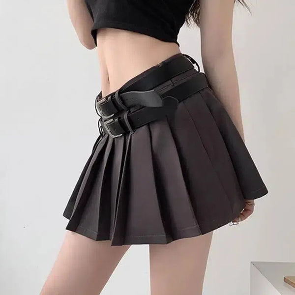 Double Waistband Pleated Short Skirt With Lining