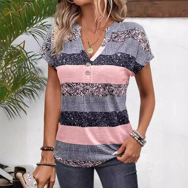 European And American Summer Short Sleeve Striped V-neck 3D