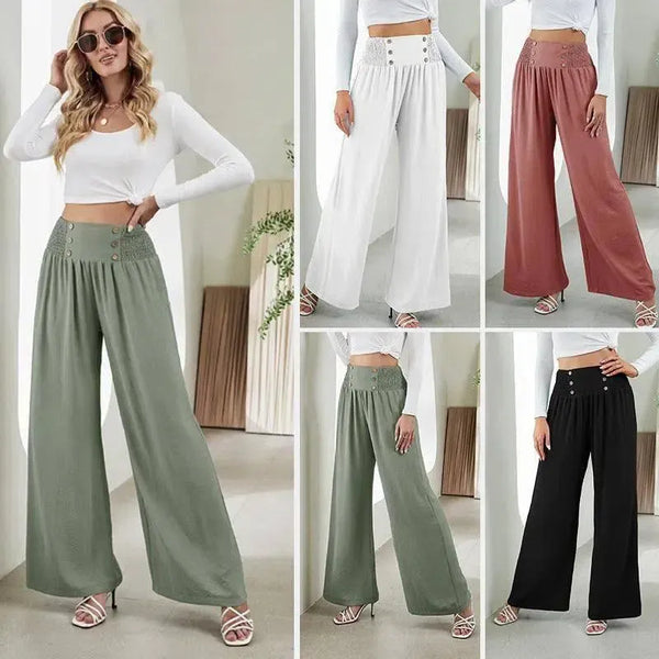Fashion Straight Wide Leg Pants Elastic High Waist Casual Trousers For Women