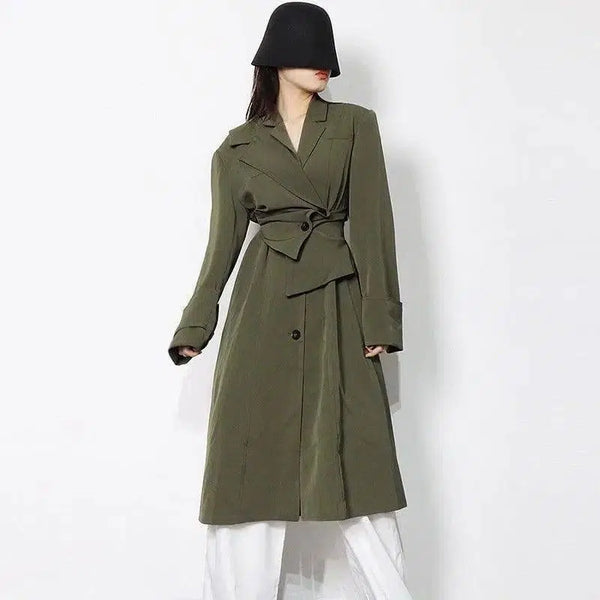 Product Description: Irregular-panel Single-breasted Lapel Long Coat