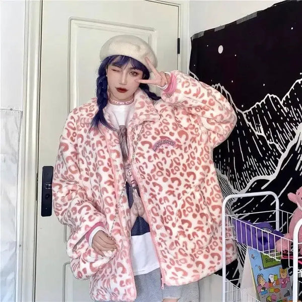 Korean Version Of Pink Lamb Wool Loose Padded Winter Coat