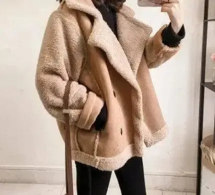 Lovemi - Stylish Lamb Wool Splicing Coat for Women
