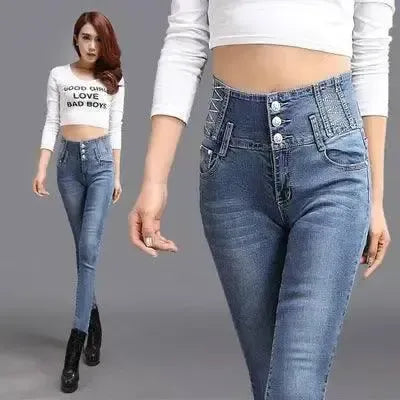- Product Type: High Waist Buckle Stretch Jeans