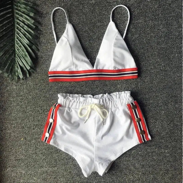 - Design: Three-piece bikini set featuring a split swimsuit style