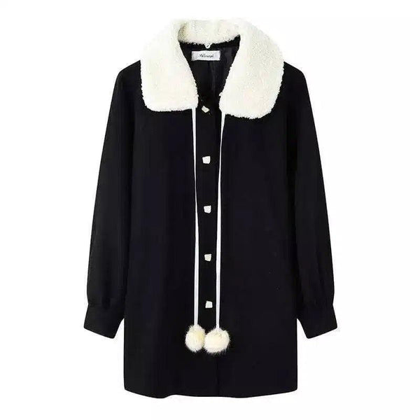 Blends Women Winter Coat Ladies Clothes Kawaii Plus Velvet