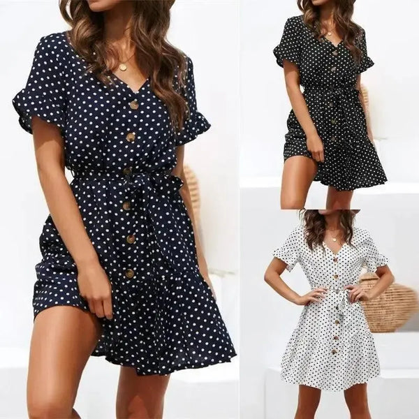Casual polka-dot high-rise strap V-neck chiffon ladies dress