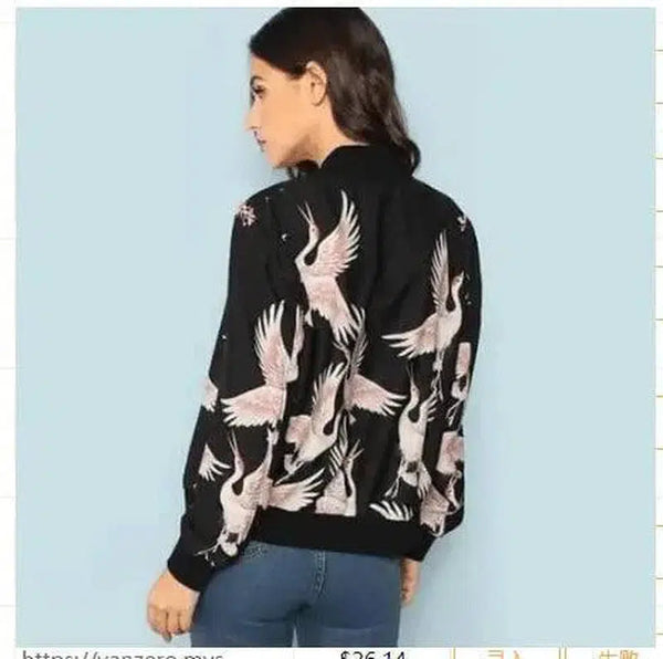 - Design: Eye-catching crane print on a black background