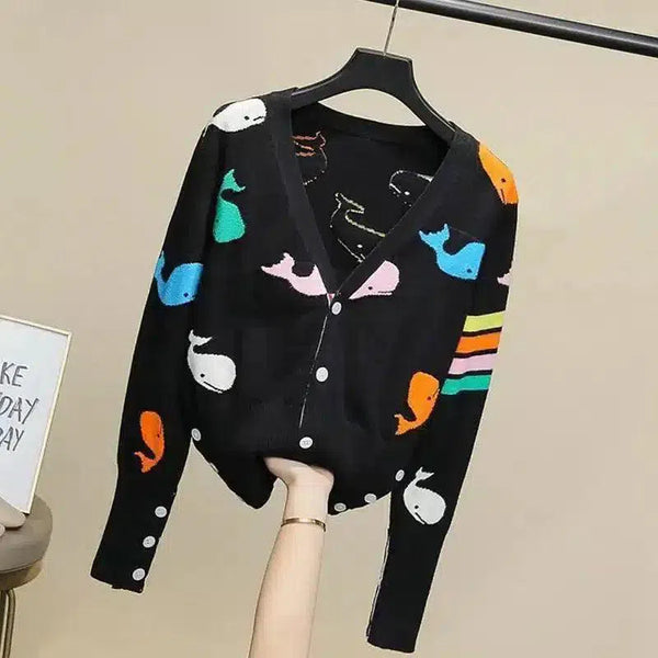 - Design: Features a playful multicolored cat print and contrasting white polka dots