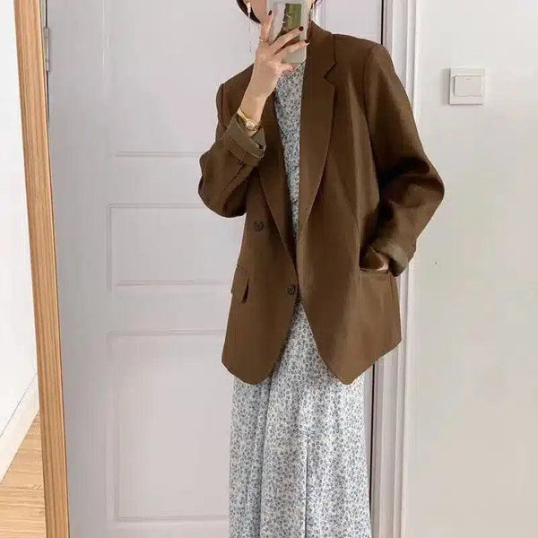 This blazer combines classic styling with a modern oversized fit for versatile wear.
