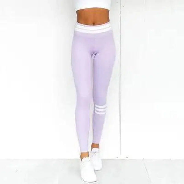 Featuring a contrasting white waistband and stylish stripes along the legs, these soft lavender yoga pants are not just for workouts. They transition seamlessly from gym sessions to casual outings, making them a versatile addition to your wardrobe.