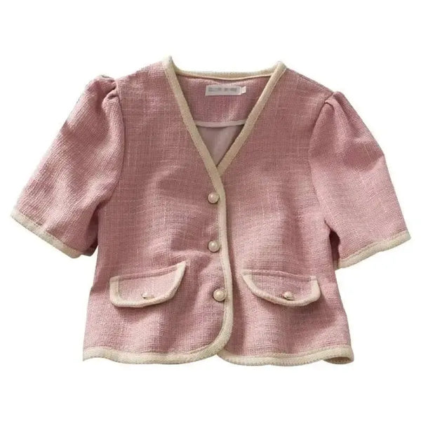 Fashion Ladies Plaid Bound Single-breasted Cropped Top