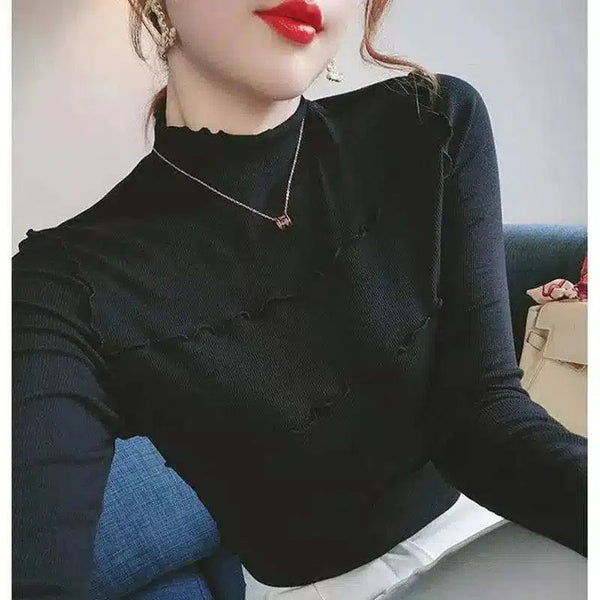 - Neckline: Mock neck with scalloped edge