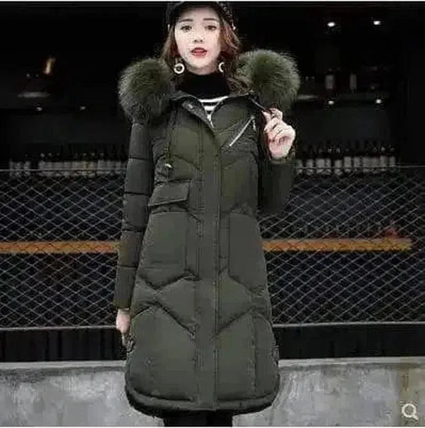 Winter Hooded Long Puffer Jacket with Fur Trim