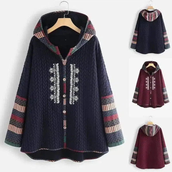 - Neckline or shoulder style: Hooded with patterned interior lining