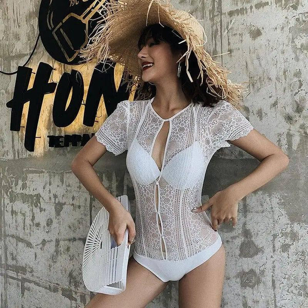 - Style: Elegant one-piece swimsuit with lace cut-out detailing