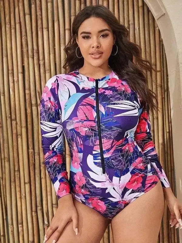 Product Description: Ladies Plus Size One-Piece Swimsuit, Long-Sleeved Printed