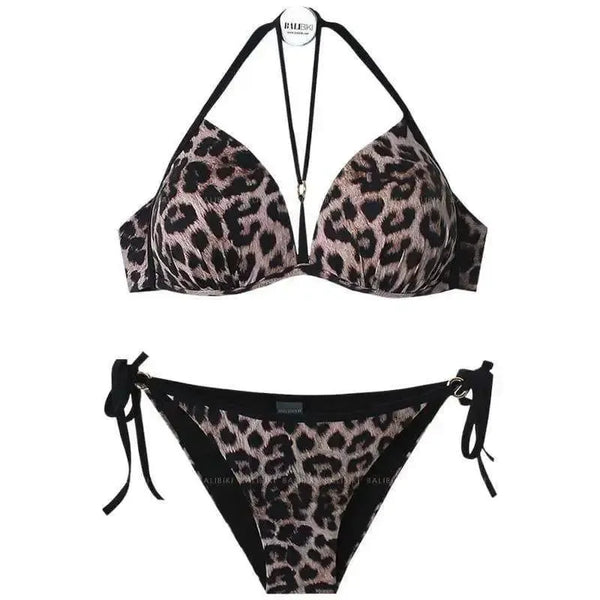 Product Description: Leopard Bikini Three-point Small Breasts Gathered