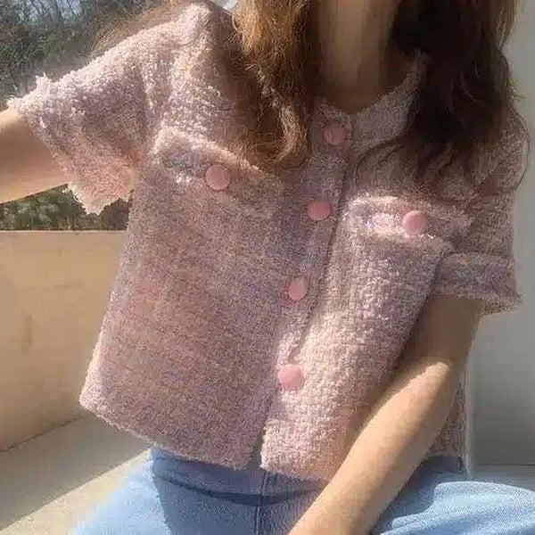 - Design Details: Features two chest pockets and playful pink buttons