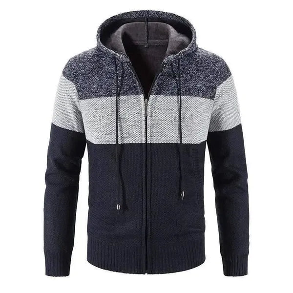 Men Sweater Thick Zipper Wool Sweaters Hooded Stripe Coat