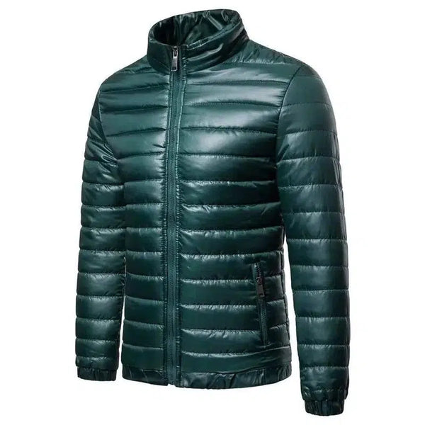 Men's Solid Down Cotton Jacket With Standing Collar