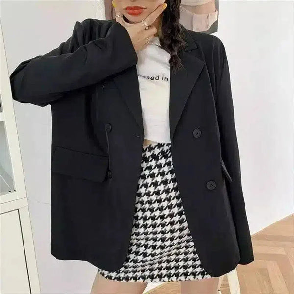 Women's Casual Blazer and Houndstooth Skirt Set