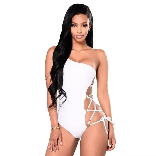 Product Description: One-Shoulder Bikini Swimsuit with Hoop Cross Strap