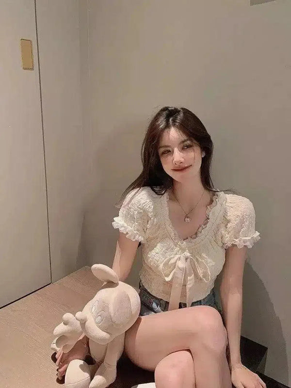 - Sleeve Length: Short sleeves with ruffle detailing