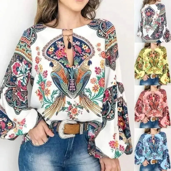 Personalized Print Round Neck Lantern Sleeve Shirt