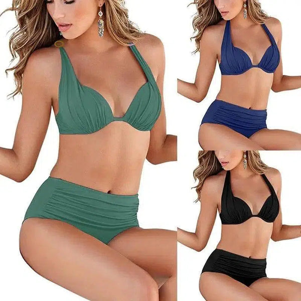 Product Description: Ruffled Underwire Bikini Plain High-Rise Swimsuit