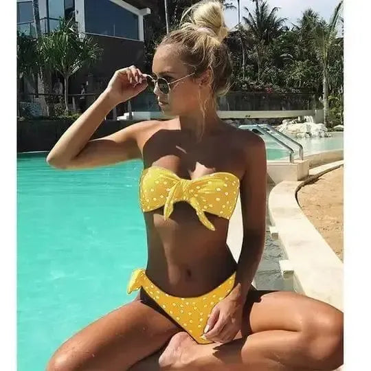 - Design: Two-piece swimsuit featuring a playful polka dot pattern