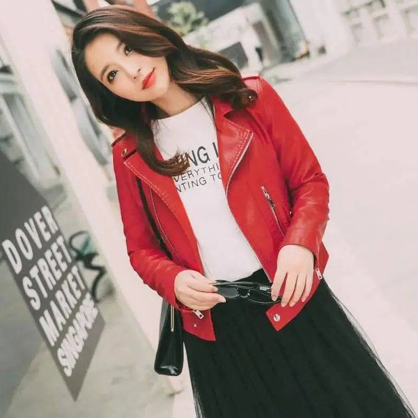 spring and autumn new ladies leather short Korean version of