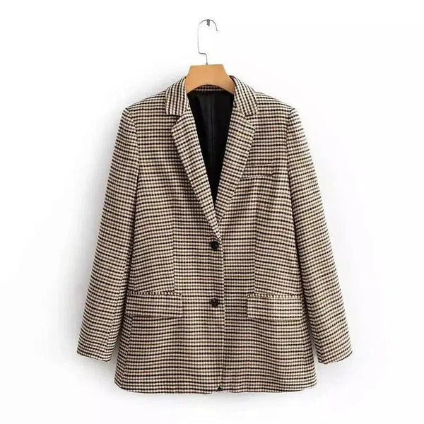 - Classic Houndstooth Blazer: Elevate your wardrobe with this timeless piece featuring a traditional houndstooth pattern in a neutral color palette.