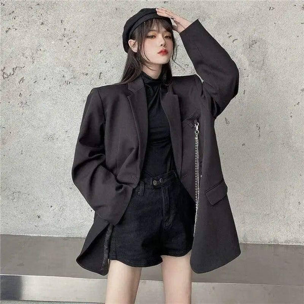 White All-match Black Loose Casual Autumn Suit