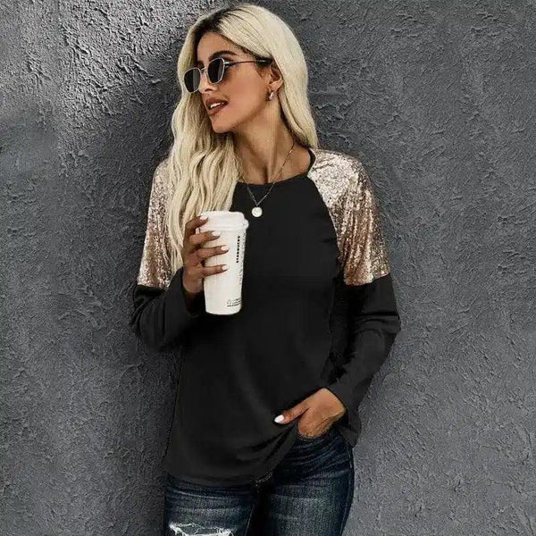 Women's Long Sleeve Sequin Shoulder Top