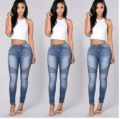 Women's stretch Slim folds stitching feet jeans pencil pants