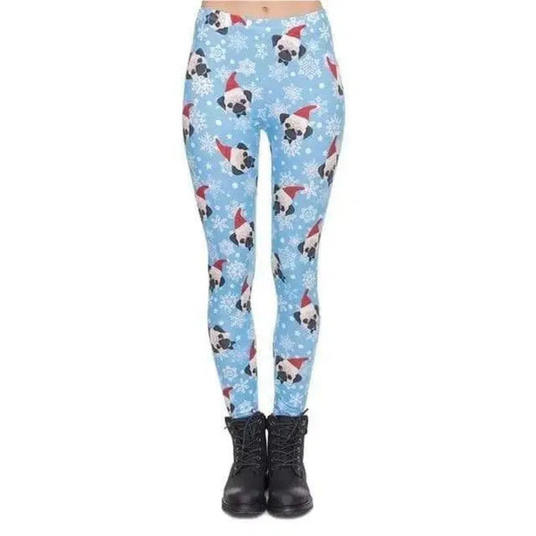 Zohra High Elasticity Women Legging Santa Pug Printing Blue