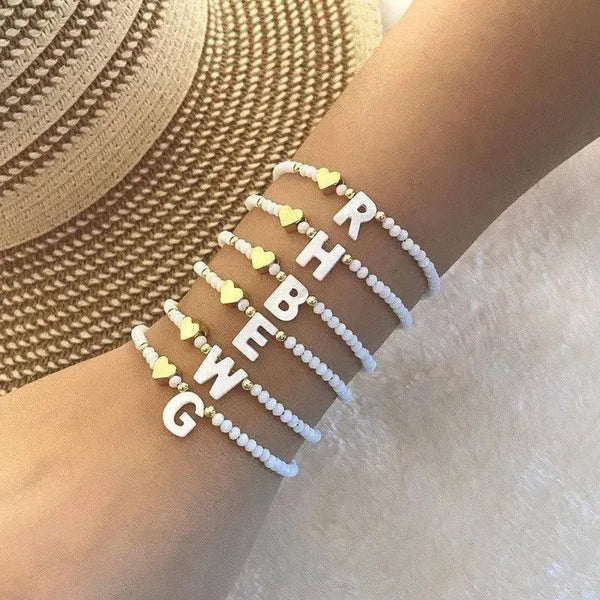 Letters White Shell Beaded Bracelet Women Metal Love Design Bracelet Jewelry