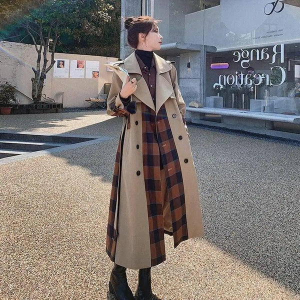 Product Description: Plaid Stitching Khaki Windbreaker Women's Small Jacket