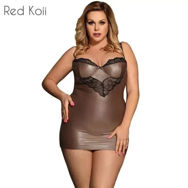 Plus Size Faux Leather Lingerie Nightdress