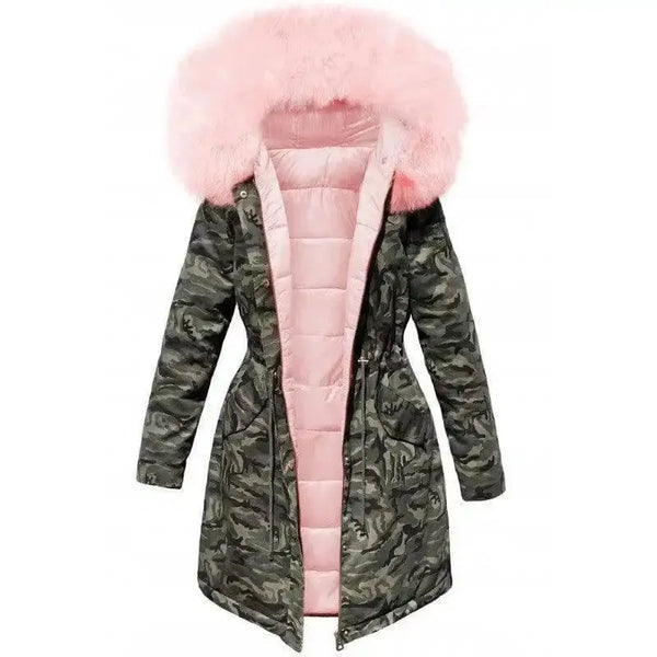 Plush Thick Coat Loose Big Fur Collar Mid-length Camouflage