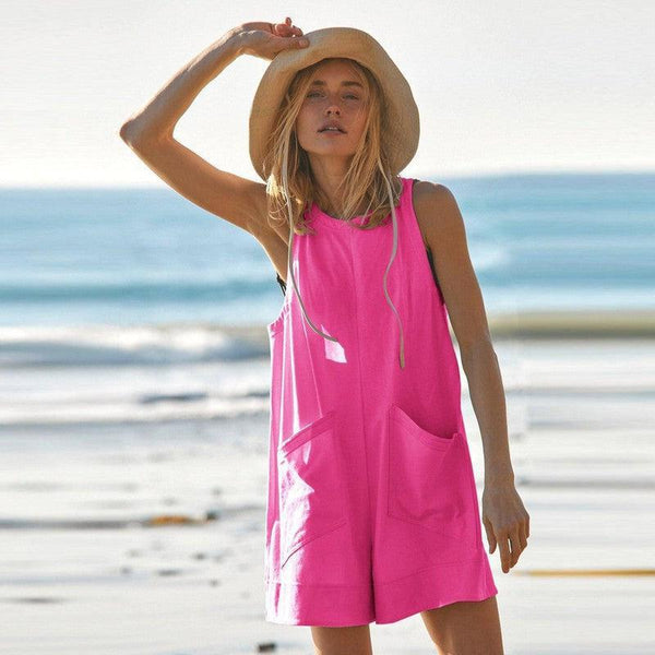 Solid Color Loose Jumpsuit With Pockets Fashion Summer Pink / L