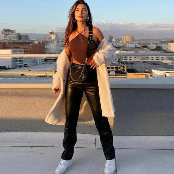 Stretch Leather Pants Women Casual PU Leather Pants Trousers