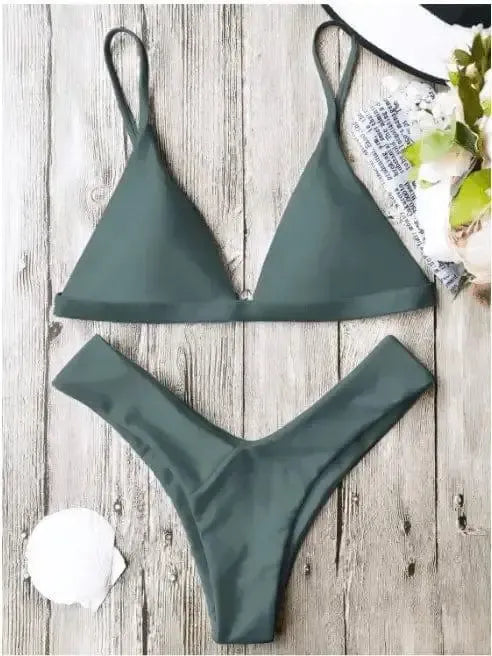 Chic Olive Triangle Bikini Set for Women - Swimwear Essentials