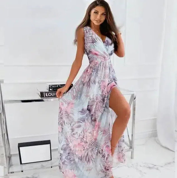 Summer Chiffon Print Lace-up Dress Sleeveless Women's