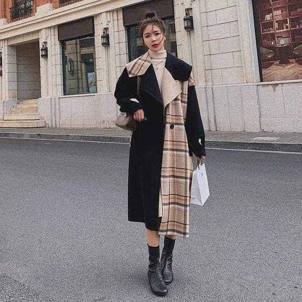 Temperament Commuter All-match Woolen Coat Contrast