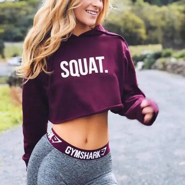 Women Fashion Active Hoodies Long Sleeve Crop Top Letter